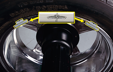 Příložením měřícího ramene do místa pro závaží volí program proces vyvážení.