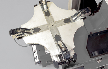 Čtyři samostředící čelisti jsou ovládány dvěma robustními pneumatickými válci, upínací síla je o 40% větší oproti systémům s jedním válcem