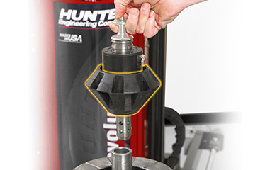 Kladky pro uvolnění patky montážního stroje Revolution umožňují otáčet pneumatikou na ráfku a spárovat nejtužší místo pneumatiky s nejnižším místem ráfku.
