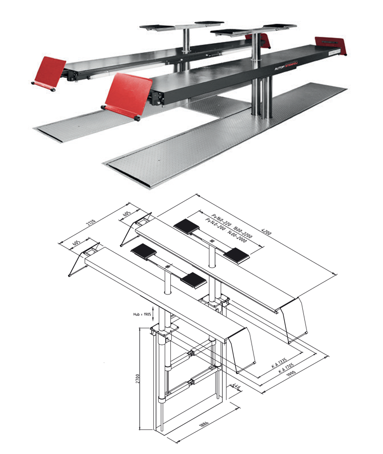Plošiny s nájezdovými rampami a zarážkami, přízdvih celého vozidla