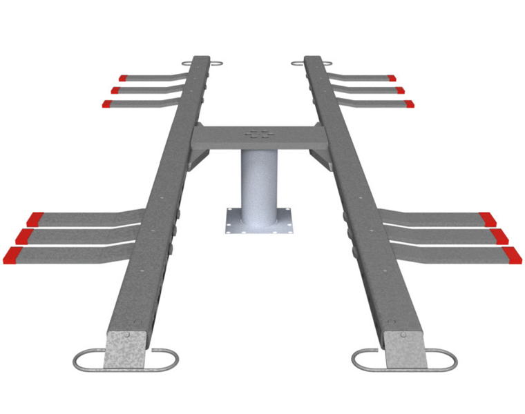 Přizpůsobení různým rozvorům přesunem zvedacích podpůrných konstrukcí