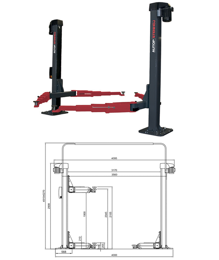 Elektro-mechanický dvousloupový zvedák