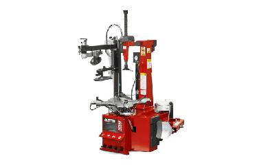 Montážní stroj s do boku se odklápějícím ramenem ovládaným pedálem