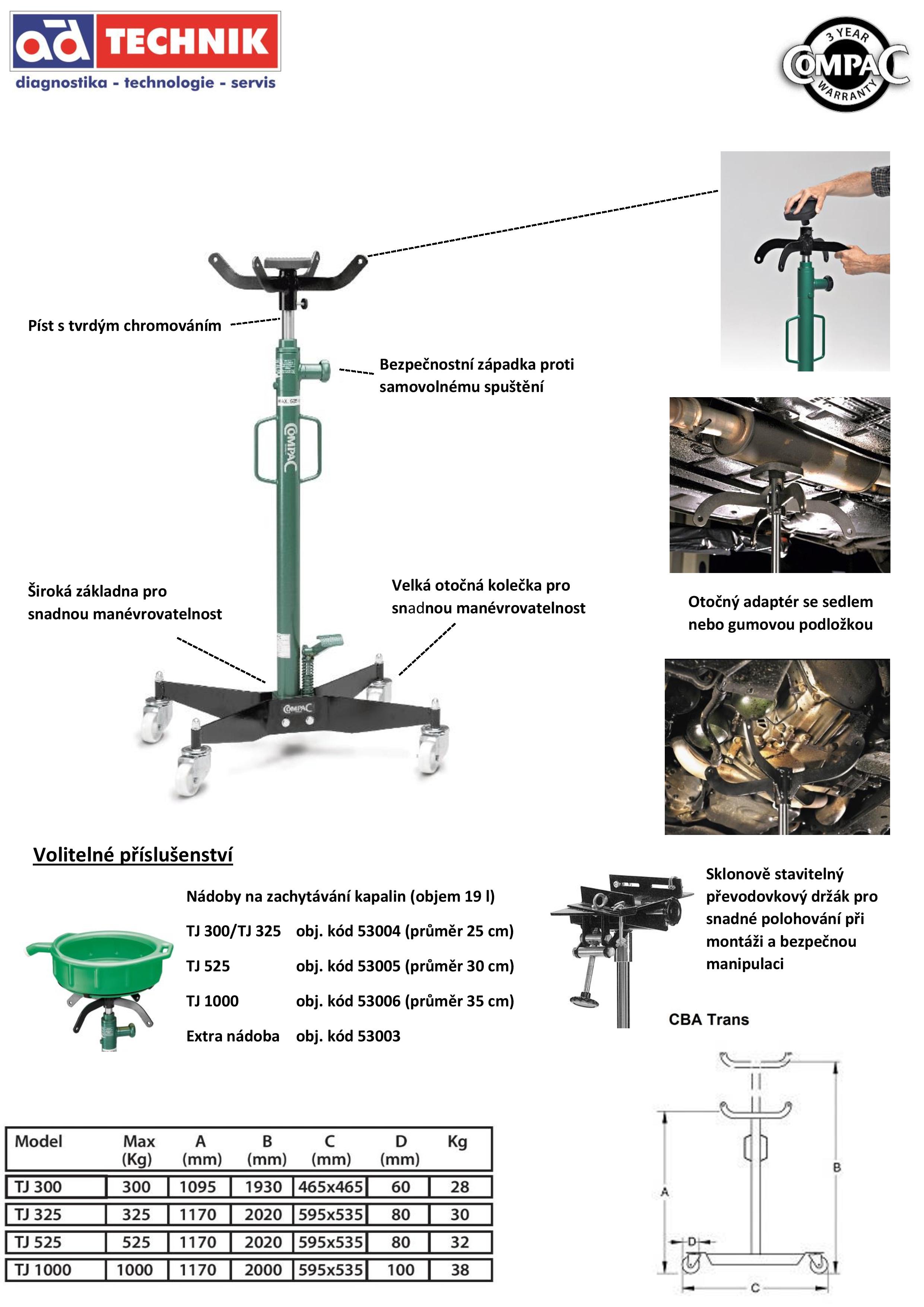 Volitelné příslušenství - zachytávací vany vypouštěných kapalin, speciální držák na převodovky