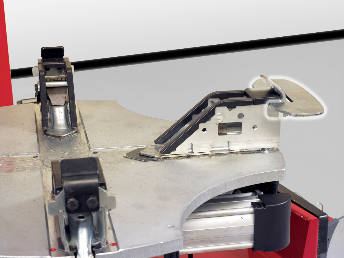 Stiskem jednoho tlačítka se výkyvné rameno aretuje na průměr a šířku kola
